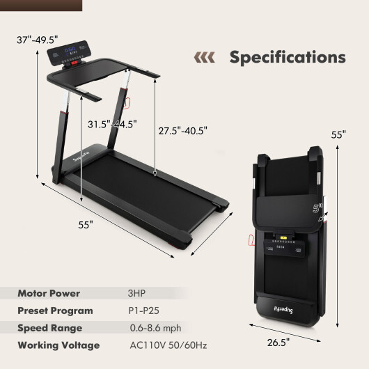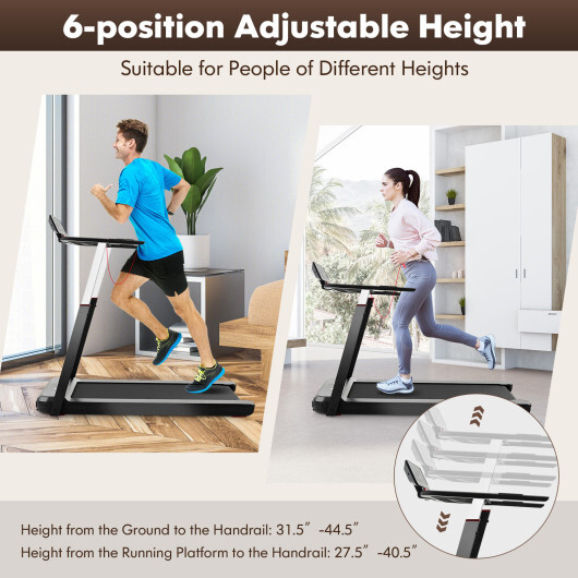 3HP Folding Treadmill with Adjustable Height and APP Control-Black