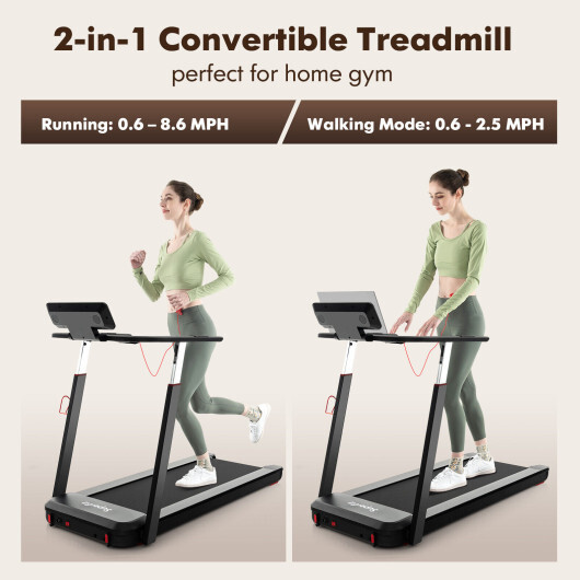 2-in-1 Folding Treadmill with Dual LED Display-Red - Color: Red