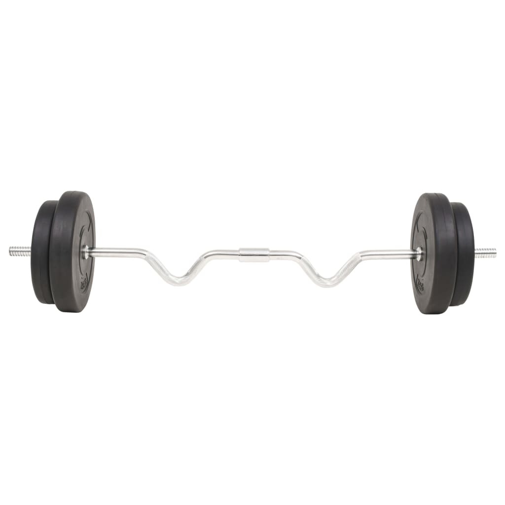 This versatile barbell set is perfect for targeting chest, biceps, arms, triceps and back muscles. It includes two 16.5 lb plates, two 11 lb plates, and one 11.9 lb barbell bar and has a total weight of about 66.1 lb.