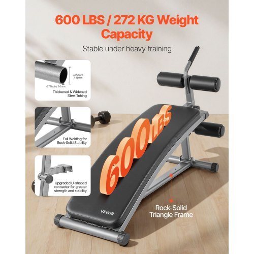 VEVOR Sit Up Bench, Curved Decline Ab Bench with Reverse CrunchHandle, with 6 Adjustable Height Setting, Heavy Duty Steel, 600 LbsCapacity for Home Gym Workouts, Strength Training, Full BodyMuscles