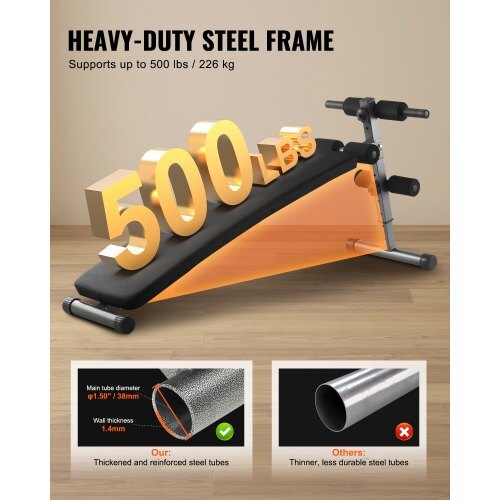 Sit Up Bench, Folding Curved Decline Ab Bench, with 5 Adjustable Height Settings, Heavy-Duty Steel, Non-Slip Design, 500 Lbs Capacity for Home Gym Workouts, Strength Training, Full Body Muscles